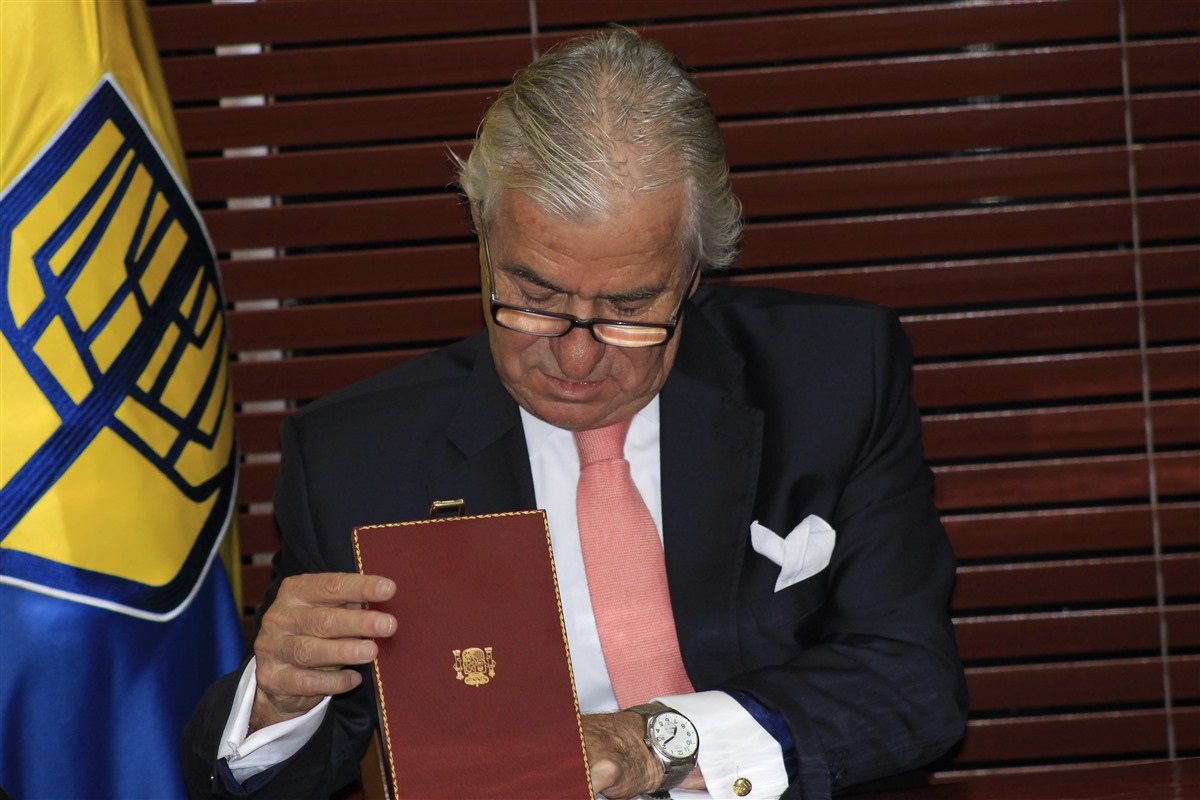 “Esta condecoración es una forma muy gráfica de decir la enorme unión que existe entre España y Colombia. Además me he hace especial ilusión que sea una universidad que ha hecho una apuesta tan importante como tener también un pie en España”, destacó el diplomático español.
