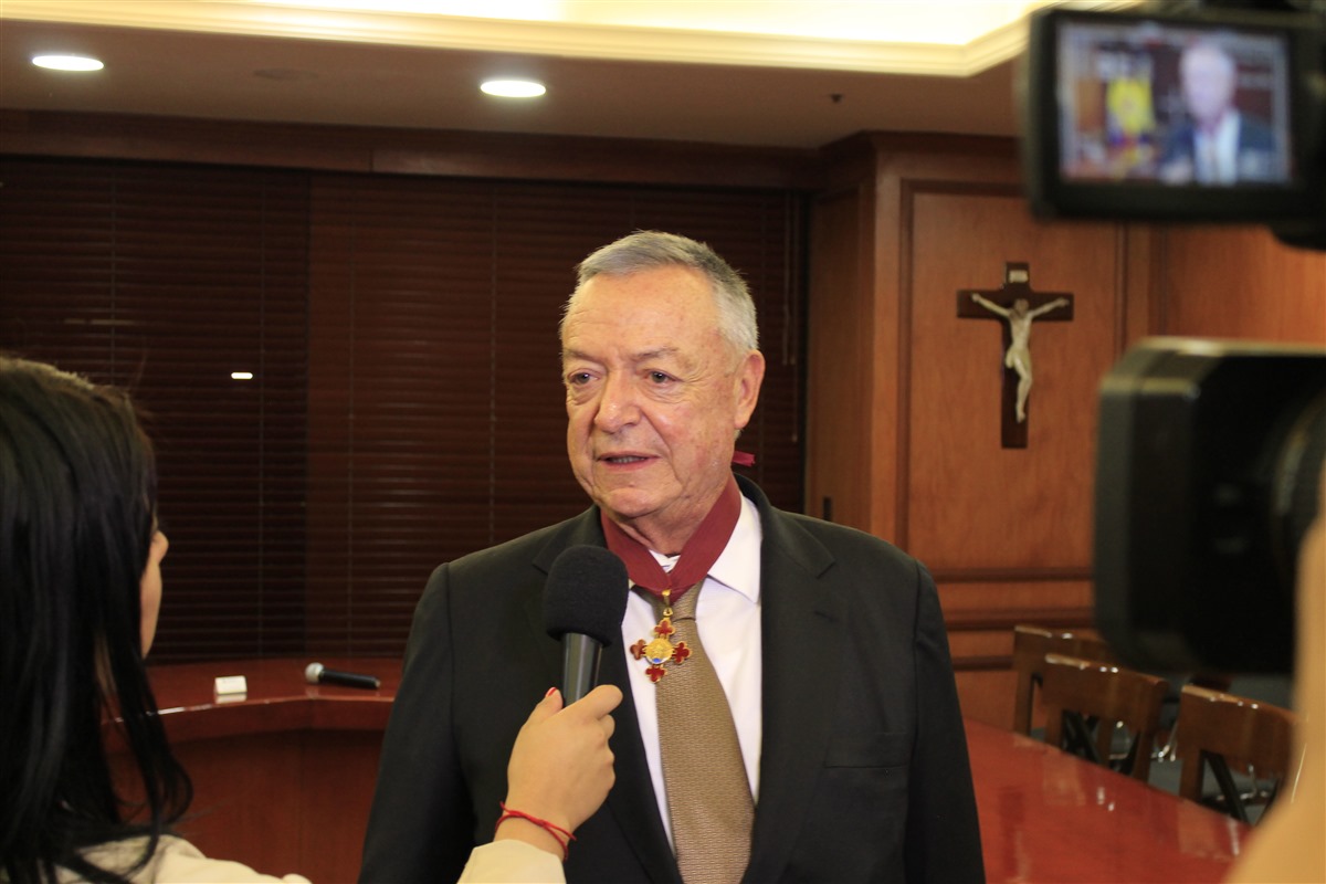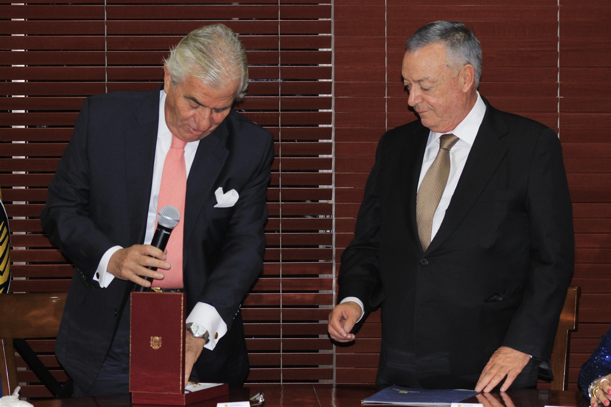 El embajador de España en Colombia, Ramón Gandarias, fue el encargado de imponer la insignia que, desde 1902, se confiere a las personas que “hayan contribuido en grado extraordinario al desarrollo de la educación, la ciencia, la cultura, la docencia o la investigación”.