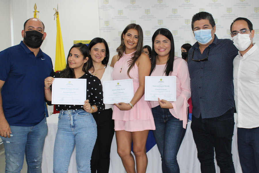 A la ceremonia de exaltación también se hicieron presentes Christian Carvajalino Pérez, decano de la Escuela Internacional de Administración y Marketing; Luis Miguel Cabrera Merlano, vicedecano de la Escuela Mayor de Derecho; Natalia Cifuentes Cleves, vicedecana de la Escuela Ciencias de la Comunicación; Kevin Medina Nieto, coordinador del programa de Ingeniería Industrial; y Viviana Ahumada Carriazo, coordinadora del programa de Psicología, el cual destacó, en su primera cohorte, a uno de sus estudiantes.