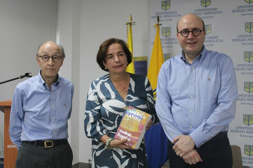 El doctor Andrés Rúgeles, agradeció la iniciativa de la Universidad por generar espacios de reflexión académica sobre los retos de la región. Su presentación se centró en su libro, América Latina: la visión de sus líderes, que surgió de la pregunta: “¿Hacia dónde va América Latina?”. El resultado, explicó, fueron 30 entrevistas a líderes regionales, 55 artículos de expertos y académicos, y 992 páginas escritas entre la Universidad de Oxford y la London School of Economics, con la participación de 106 personalidades seleccionadas por su “profundidad intelectual, diversidad geográfica, pluralidad política e ideológica, balance de género y equilibrio generacional”.