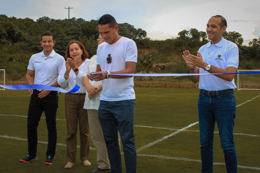 EL DELANTERO COLOMBIANO CARLOS BACCA INAUGURA CANCHA DE FÚTBOL EN LA SERGIO BARRANQUILLA
