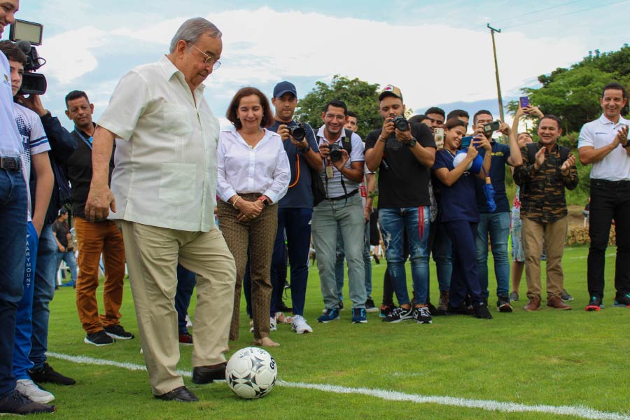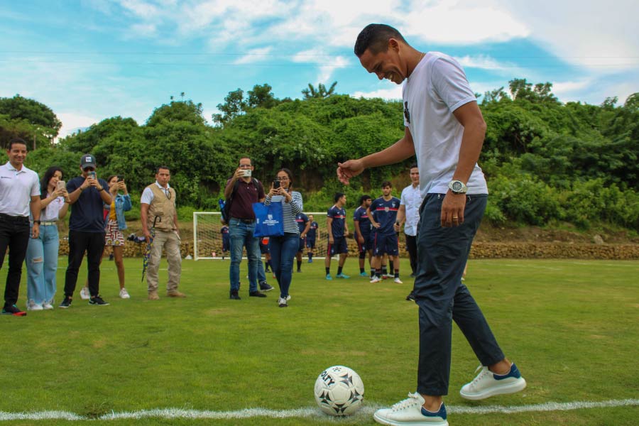 Durante la ceremonia inaugural, el delantero colombiano fue el encargado de realizar el corte de cinta oficial que da apertura a la cancha de fútbol sergista con medidas FIFA, y que servirá para el disfrute de toda la comunidad académica y los jóvenes que forman parte de la Fundación Carlos Bacca.