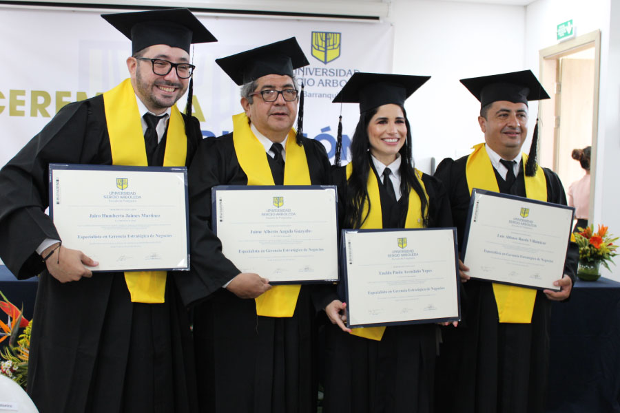 Maestría en Administración de Negocios MBA; Maestría en Dirección y Gestión Tributaria; Especialización en Gerencia Estratégica de Negocios; Especialización en Gerencia Financiera; Especialización en Derecho Laboral y Seguridad Social, y Especialización en Derecho Penal, fueron los programas que recibieron grado durante la solemne ceremonia, en la cual estuvo presente nuestro vicerrector general de las sedes del Caribe, doctor Camilo Noguera Abello; la vicerrectora académica de las sedes del Caribe, doctora Adriana Uribe Urán; el director de la Escuela de Postgrado, el doctor Jaime Gómez Álvarez; y la directora de la Especialización en Gerencia Estratégica, la doctora Beatriz Carrizosa Bravo.