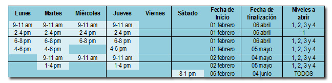 hORARIOS Y FECHAS