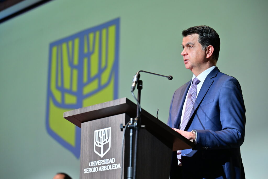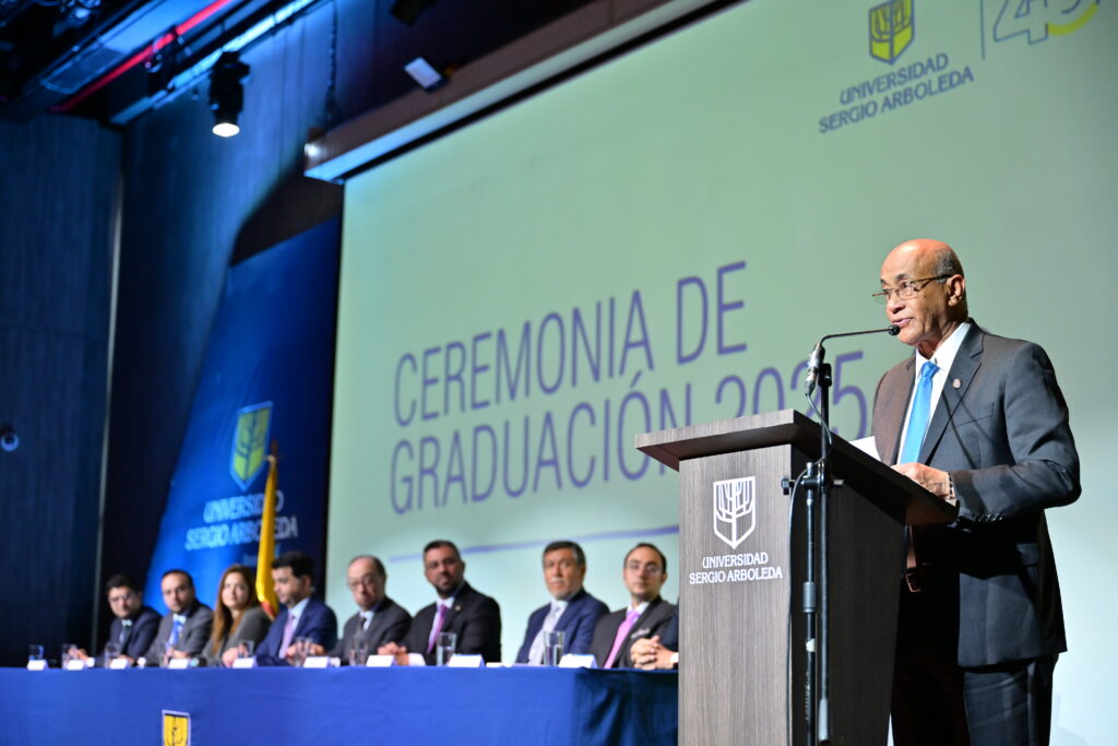 En su discurso a los graduandos, Jorge Noguera Calderón, rector de Universidad Sergio Arboleda, sostuvo que “conmemoramos con optimismo y alegría, el triunfo del esfuerzo, la culminación de una meta que honra no solo a quien la alcanza, sino también a aquellos que acompañaron el camino, como lo son la familia, los maestros, los compañeros y la Institución misma. Recuerden que la sabiduría profesional no es un don natural, se forma enfrentando desafíos reales, decidiendo con prudencia, corrigiendo con humanidad y persistiendo con carácter”.