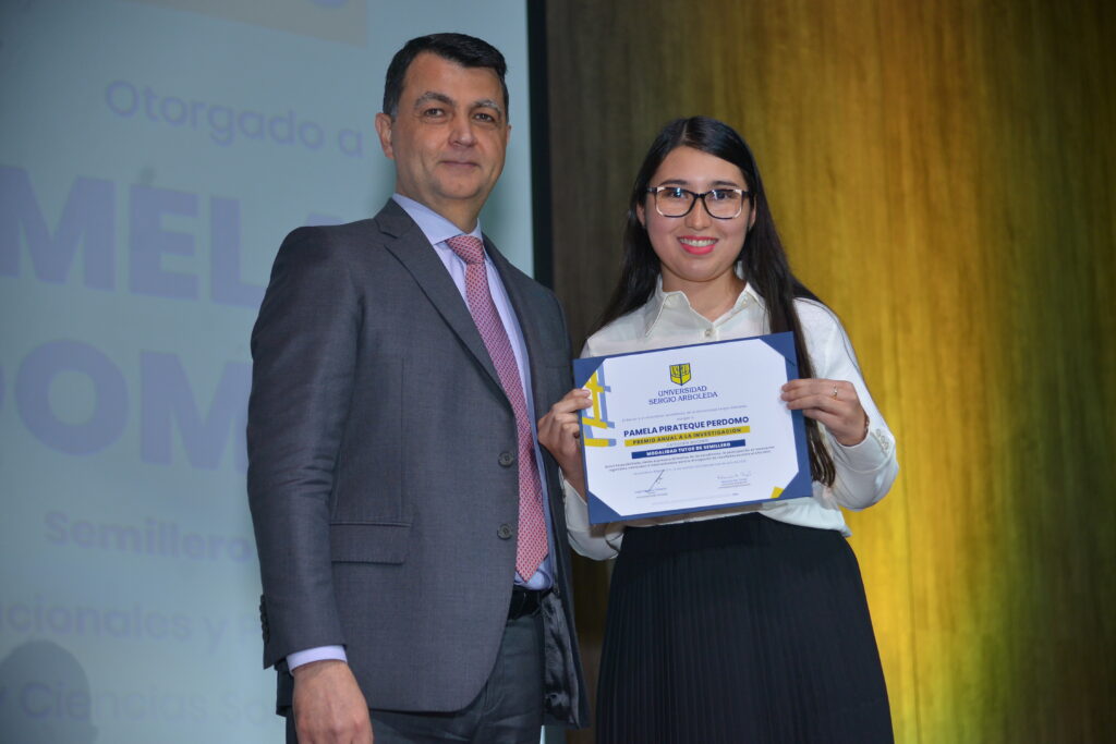 Además de Pamela, 15 docentes fueron exaltados con el Premio Anual a la Investigación y 23 con el Premio de Excelencia Sergio Arboleda por su compromiso y dedicación, en una ceremonia especial que se llevó a cabo el pasado 21 de julio, en compañía de sus colegas y familiares.