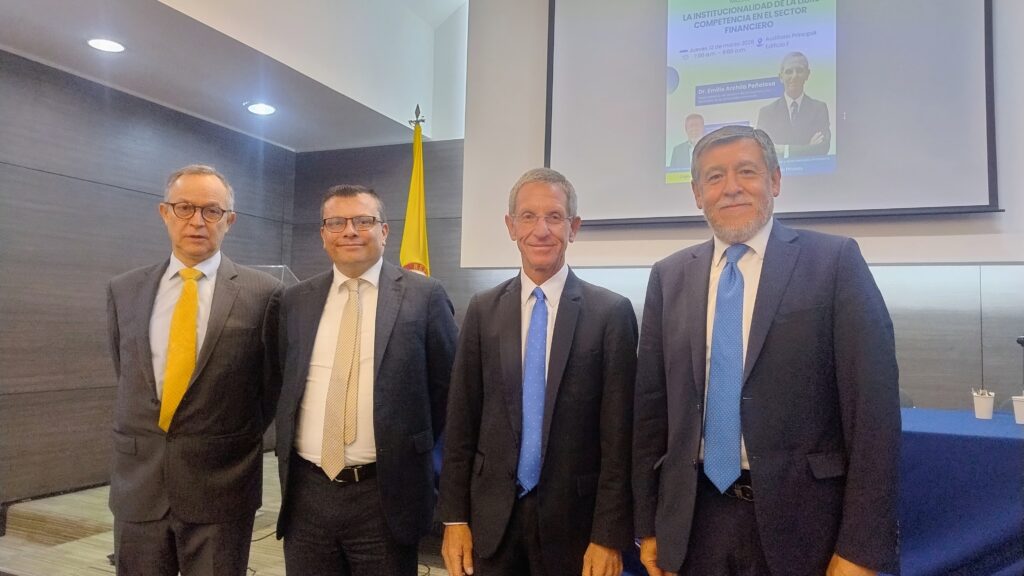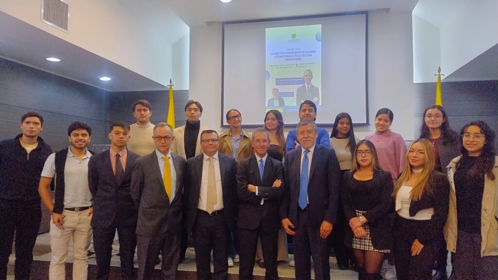 Partiendo de esta cuestión, y desde el contexto de la Constitución Política y las normas especiales, el profesor Archila Peñalosa, del Departamento de Derecho de la Empresa y los Mercados de la Universidad Externado de Colombia, presentó metodológicamente en el auditorio de la Escuela Mayor de Derecho de la Universidad Sergio Arboleda tres pilares sobre el tema de su sesión: los elementos sustantivos, los procedimientos y las autoridades. En su intervención, compartió reflexiones sobre la aplicación e importancia de la libre competencia en el sector financiero colombiano. Explicó especialmente la delimitación y la sinergia entre las funciones de la Superintendencia de Industria y Comercio y la Superintendencia Financiera, así como conceptos clave como la economía social de mercado, la intervención, la inspección, vigilancia y control, la abogacía de la competencia y la protección al consumidor.
