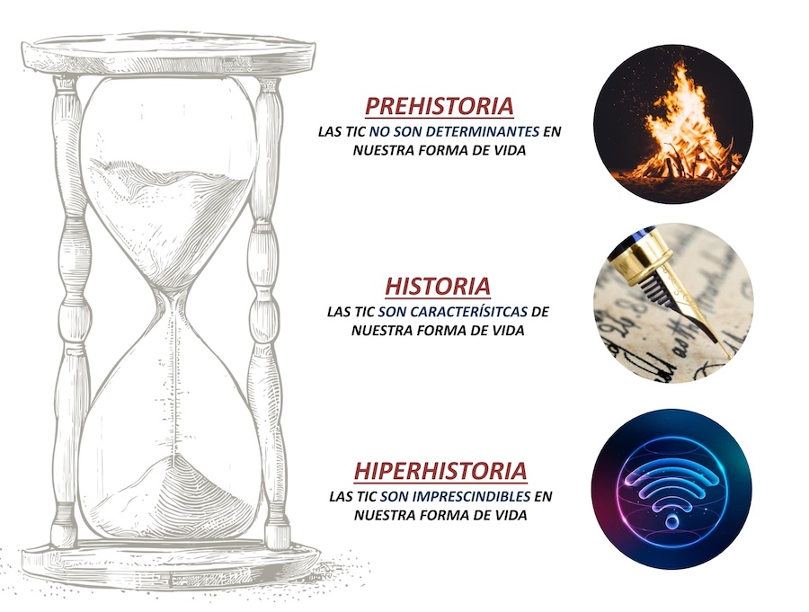 digitales-, pues igualmente nuestra condición técnica supone una manera de habitar y de convivir en la que está comprometido algún tipo de Tecnología de la Información y la Comunicación. A esta forma de vida la podemos llamar prehistórica, y aquí ya no nos referimos a una época en la que aún no emerge la escritura como técnica, sino a una manera en la que el hombre da forma a su existencia a partir de unas TIC no digitales, y que finalmente son determinantes para llevar una vida humana