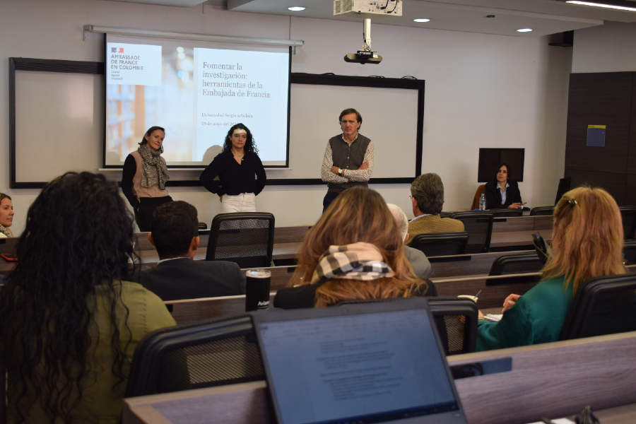 En primer lugar, decanos y directivos de la Universidad se reunieron con David Bessier, en un encuentro organizado por la Oficina de Relaciones Internacionales – ORI, que permitió dar un acercamiento a las oportunidades ofertadas por el Gobierno francés, entre ellas, la convocatoria de movilidad “Trampolín” para investigadores colombianos. Asimismo, esta reunión permitió reconocer diversas áreas de trabajo común y trazar una hoja de ruta para aunar esfuerzos entre instituciones de educación superior de Francia y Colombia.