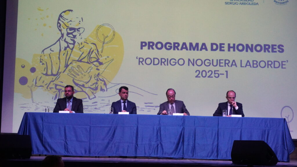 La ceremonia, que se realiza cada semestre académico, y consolida el Cuadro de Honor de la Universidad Sergio Arboleda, también contó en la mesa directiva con Mauricio Rey Torres, Víctor Malagón Basto y Juan Cárdenas Niño.