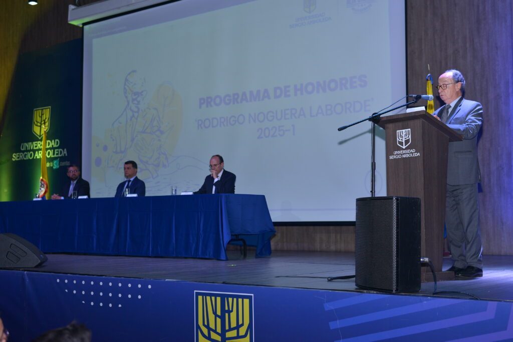 “Este Programa de Honores, que lleva el nombre de nuestro fundador Rodrigo Noguera Laborde, más que celebrar un resultado académico, nos invita a reflexionar sobre la importancia de cultivar las virtudes que hacen, a cada alumno, un buen estudiante hoy y una buena persona por el resto de la vida. Quiero detenerme en la ética como principio de vida, que no es más que esa convicción íntima que nos impulsa a obrar siempre con rectitud, incluso, cuando nadie nos observa”, sostuvo Jorge Noguera Calderón, rector de la Universidad Sergio Arboleda, quien presidió la ceremonia con un emotivo discurso dirigido a los estudiantes exaltados.