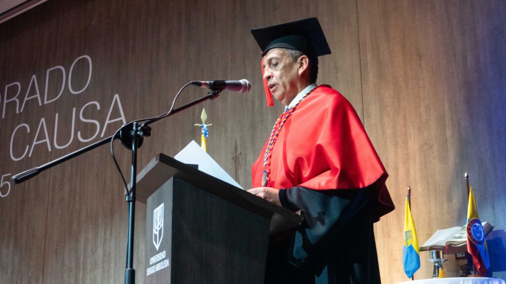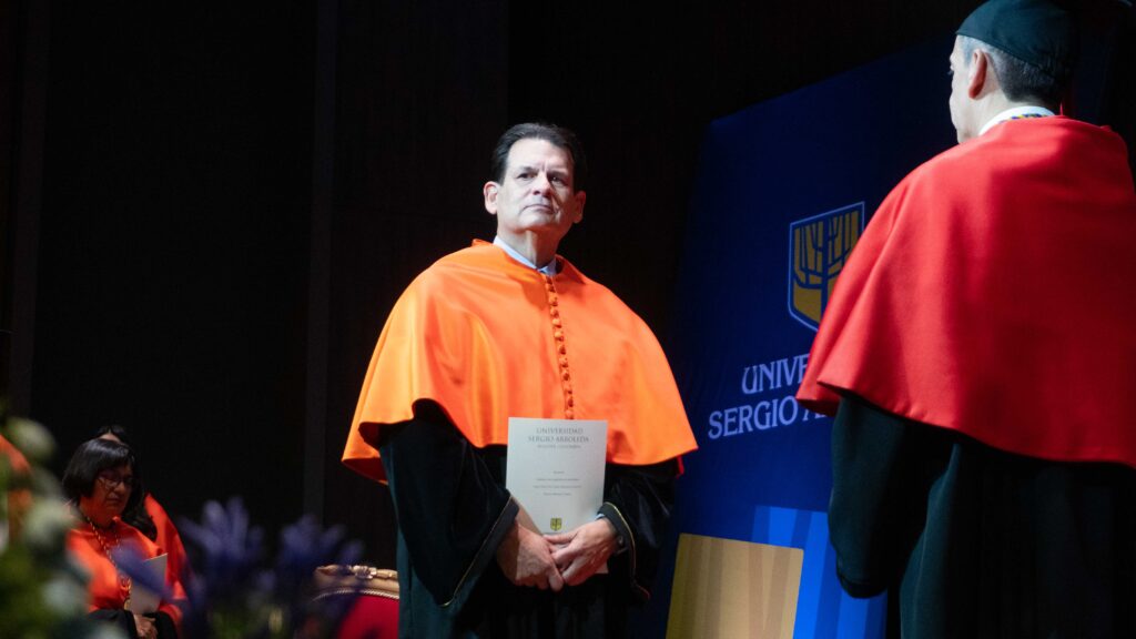 “Este Doctorado de la Universidad Sergio Arboleda es un gran ejemplo para el país y es una gran apuesta para contribuir al desarrollo de capital humano avanzado, la generación de conocimiento, la transferencia de tecnología e innovación, la internacionalización y el fortalecimiento de la infraestructura de investigación”, aseguró el Doctor Honoris Causa.