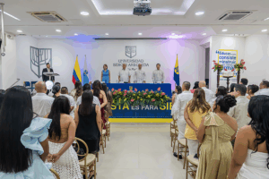 Durante su discurso, el Rector Seccional expresó su satisfacción por la formación de Alta Calidad que recibieron los nuevos Egresados Sergistas, y sostuvo que “[…] Esta Casa de Estudios les permite a los samarios estar capacitados, mediante el impulso de la formación y el emprendimiento, logrando impactar el progreso de la Región Caribe”.