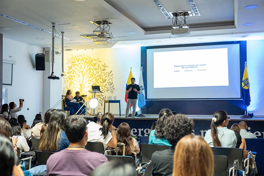 En el marco de Extracom se llevó a cabo la conferencia “Storyfeeling: de la razón a la emoción”, con los invitados especiales: Isaac Chaparro, Vicepresidente Estratégico de Inter Rapidísimo; y Edwin Romero Morales, Gerente de publicidad de Inter Rapidísimo.