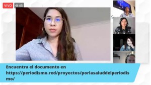 Ángela Merchán desde su trabajo con la Red Colombiana de Periodistas con Visión de Género, mencionó que esta red nació con el objetivo de acompañar a las periodistas en su oficio, y habló sobre un proyecto que están llevando en este momento, en el que informan sobre el acoso laboral que sufren las periodistas. Merchán hizo hincapié en que hay varios temas que suceden en el país con las mujeres y se debe hablar de ellos para no dejarlos pasar y ser olvidados.