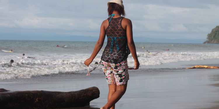 El sonido de la champeta se desvanece en la marea. Analí, a quien le apodan “la negra” con maniobras y estruendosas risas les enseña a aletear sobre tablas dibujadas en la arena, y luego todos corren como tortugas cuando transitan de su nido al mar.